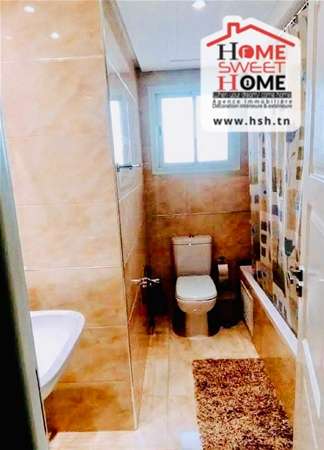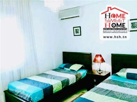 Un appart meublé de haut standing au 2ème étage situé dans une résidence calme et sécurisée prés de tout commodités à l’Aouina. On a un spacieux salon, une cuisine équipée avec séchoir, 2 chambres à coucher avec balcon et une salle de bain. NB : Climatiseur, chauffage central et une place de parking au sous-sol sont disponibles. Pour plus de renseignements contactait l’agent sur le 58780890.