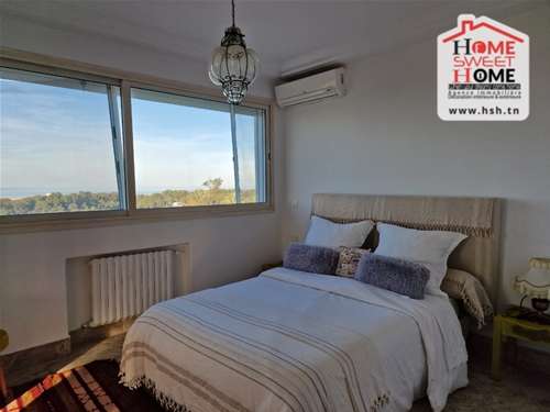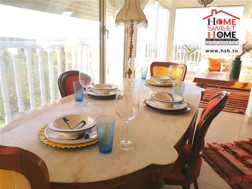 Un appart au 2éme étage meublé avec une vue sur mer situé dans la résidence de l’hôtel golden tulipe de Gammarth. A L’entrée, On a un grand salon avec balcon , 2 chambres ,une salle de bain, et une terrasse au toit avec barbecue et vue panoramique.Pour tous les renseignements, contacter l’agent sur le 54670670.