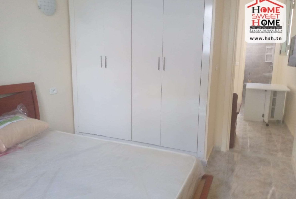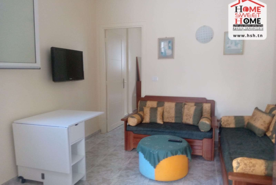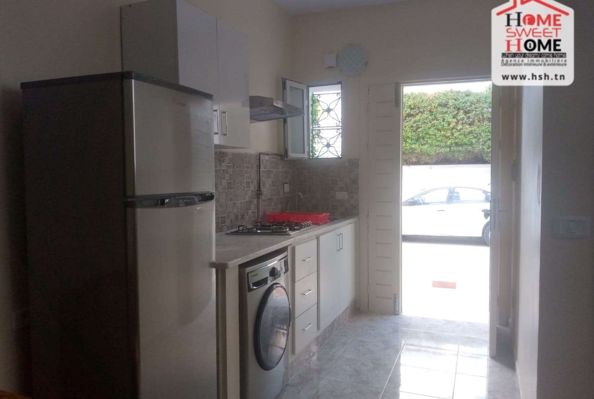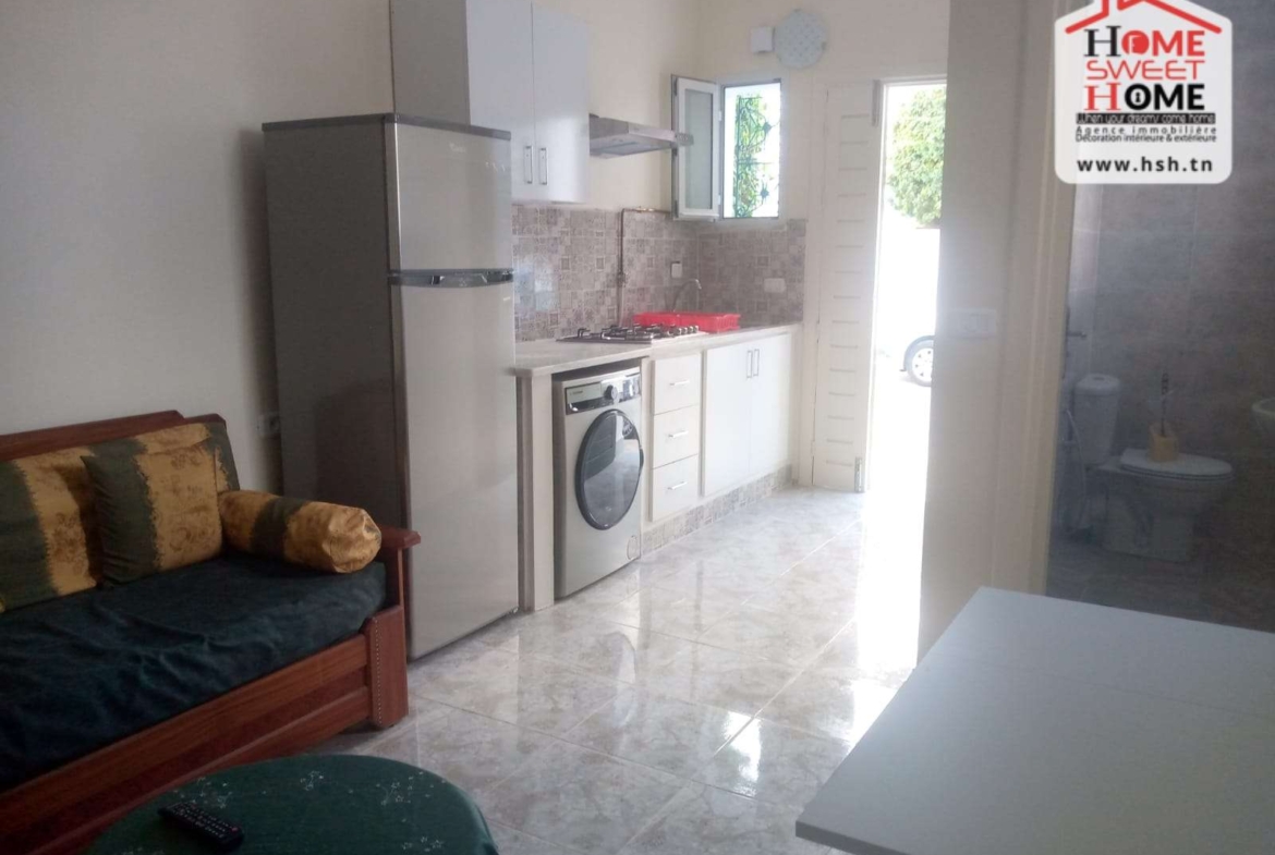 Un studio richement meublé situé dans un quartier résidentiel à Cité Ennassim, La Marsa Plage. A L’entrée, On a une cuisine ouverte sur un salon, une chambre et une salle de bain. Pour tous les renseignements, Contacter L’agent sur le 56790780.