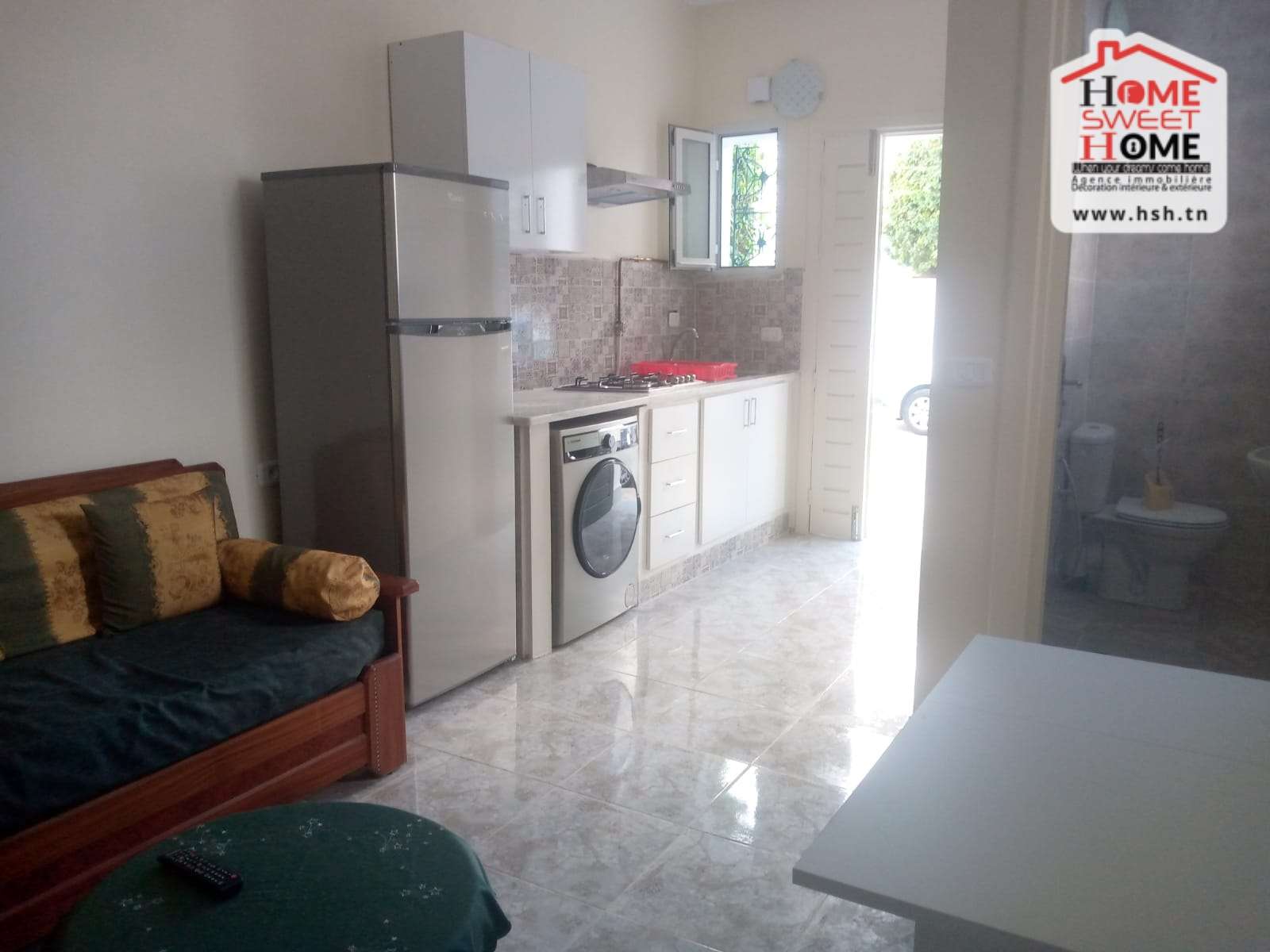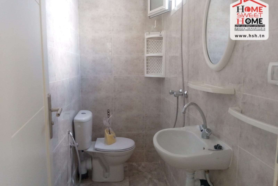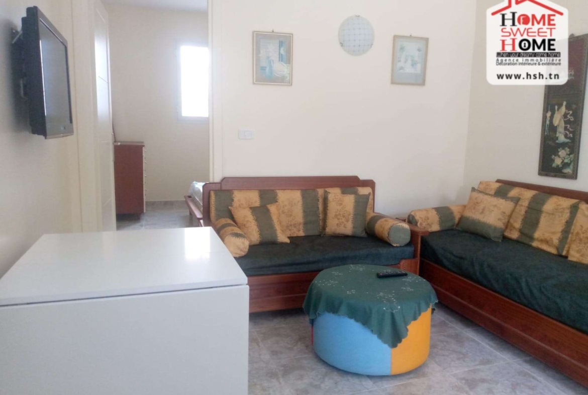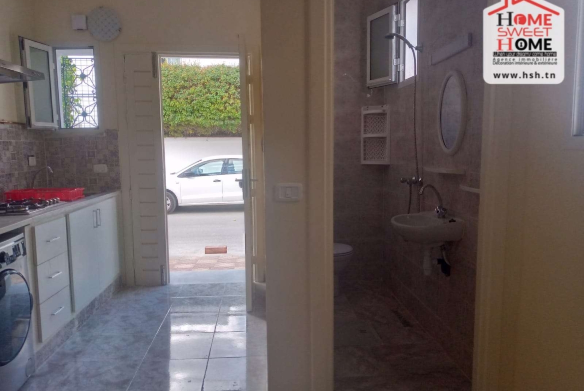 Un studio richement meublé situé dans un quartier résidentiel à Cité Ennassim, La Marsa Plage. A L’entrée, On a une cuisine ouverte sur un salon, une chambre et une salle de bain. Pour tous les renseignements, Contacter L’agent sur le 56790780.
