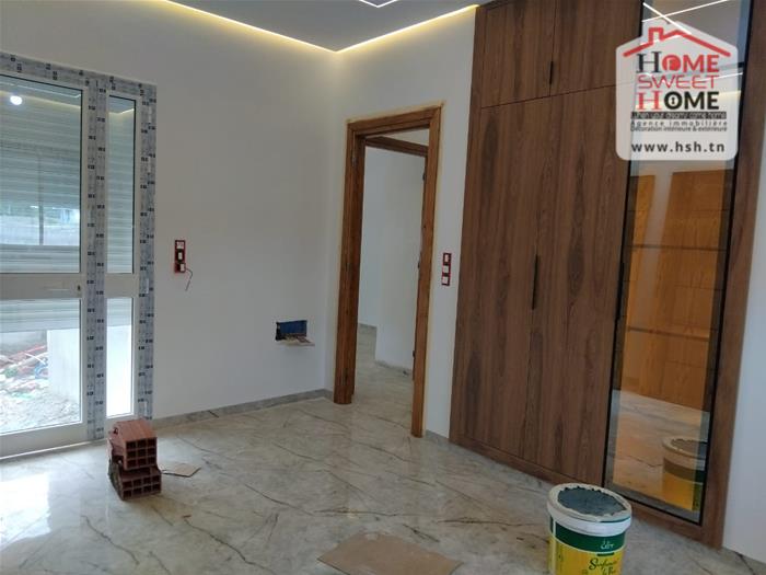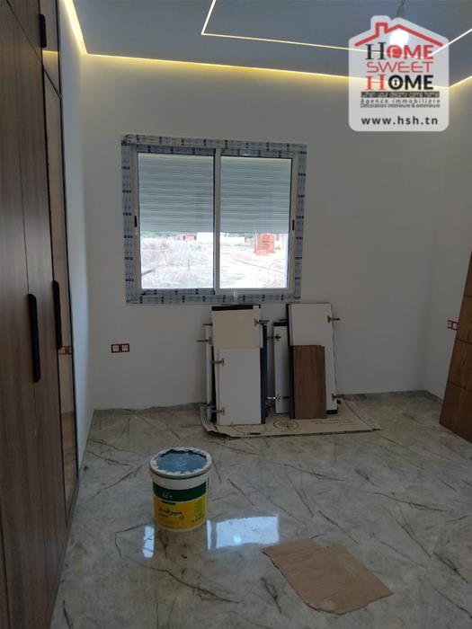 Appart S2 d’une superficie de 100m², situé dans une résidence à Kélibia plage Ezzahra, à 500m de la mer. A l’entrée on trouve un salon, une cuisine avec terrasse, 2 chambres avec dressing et une salle d’eau. Contacter l’agent: 56590380