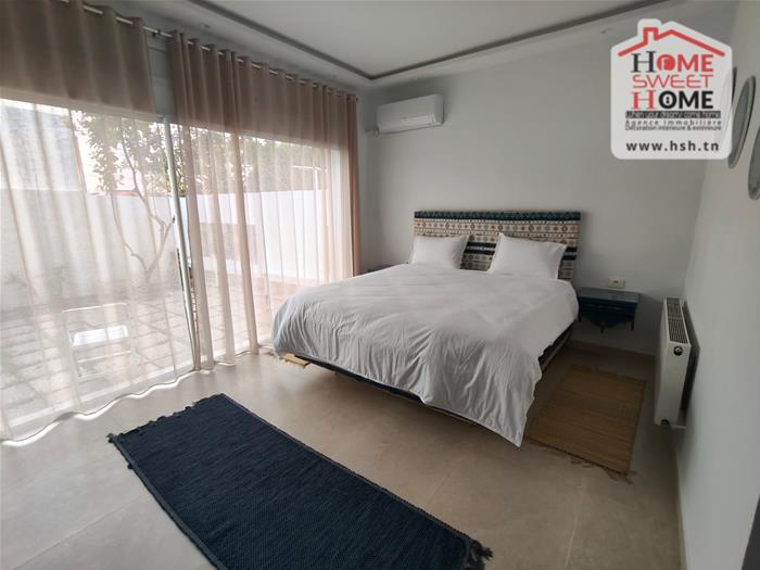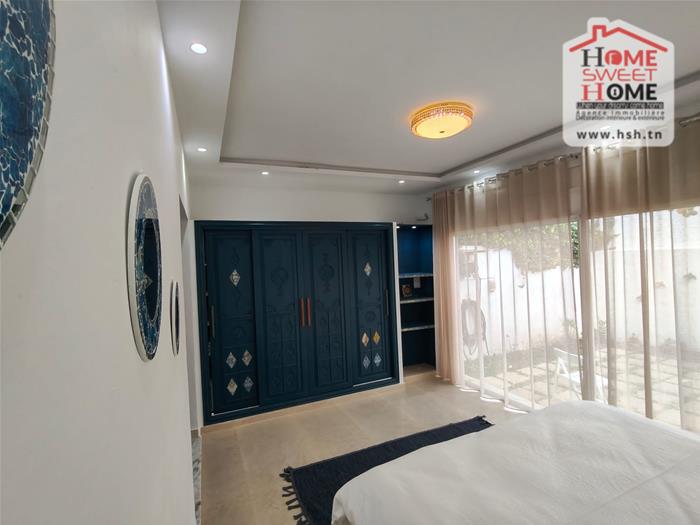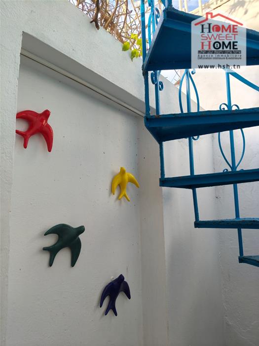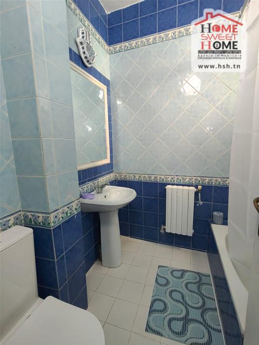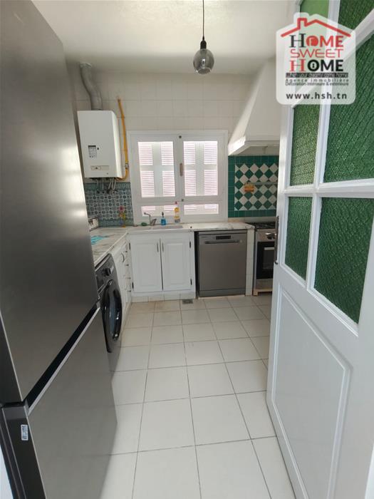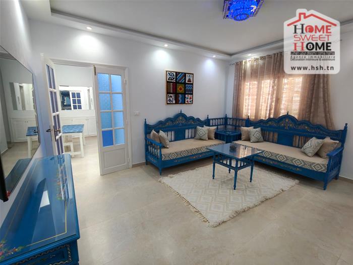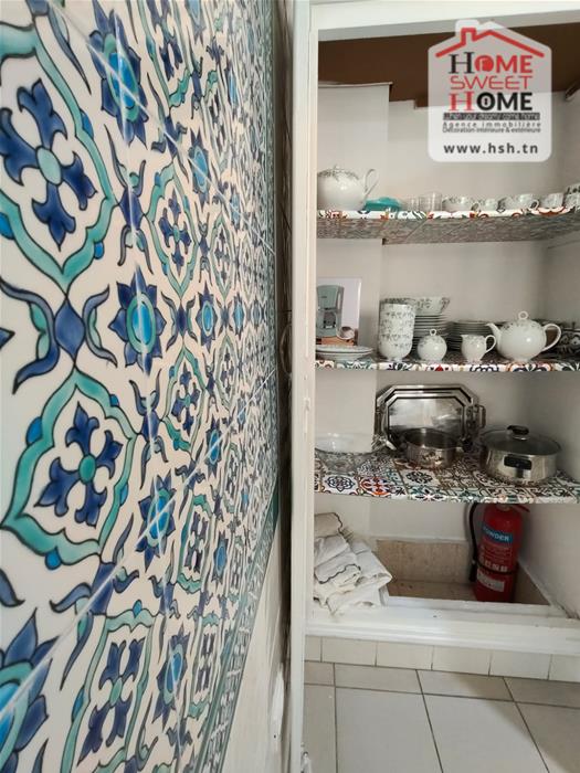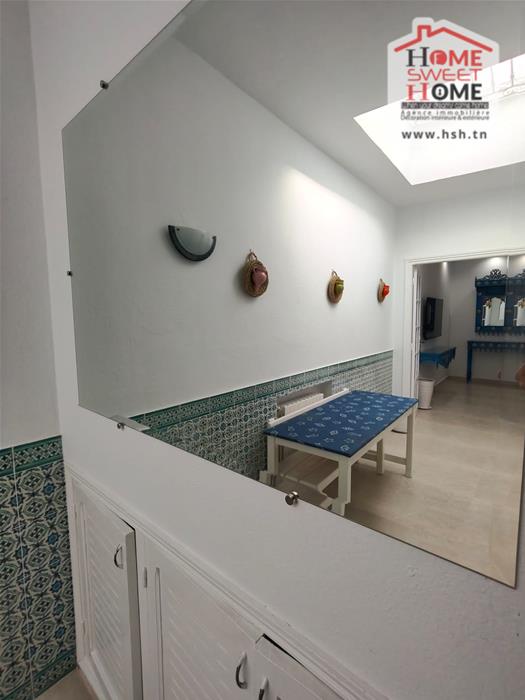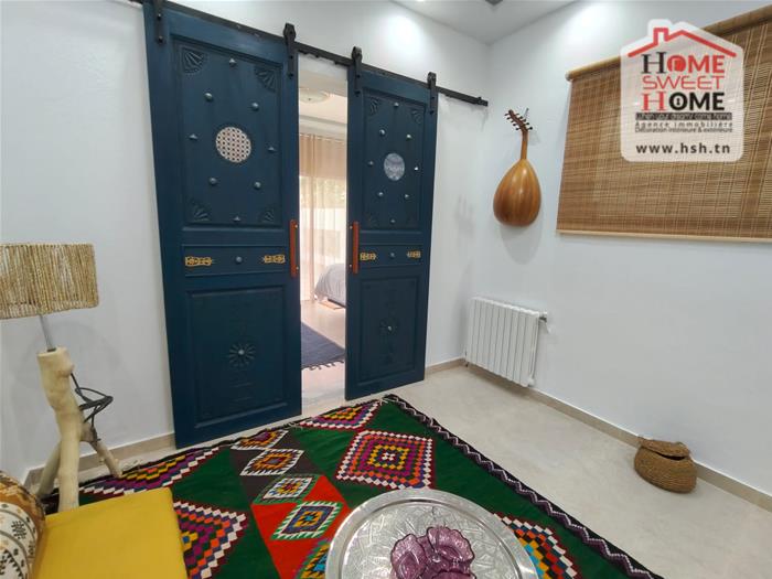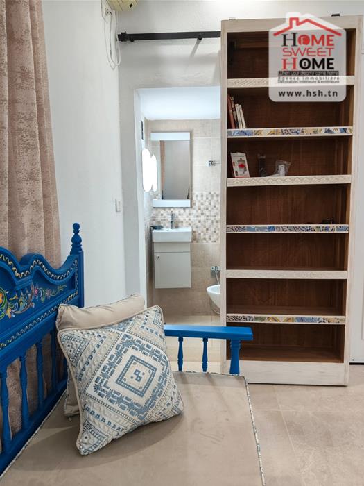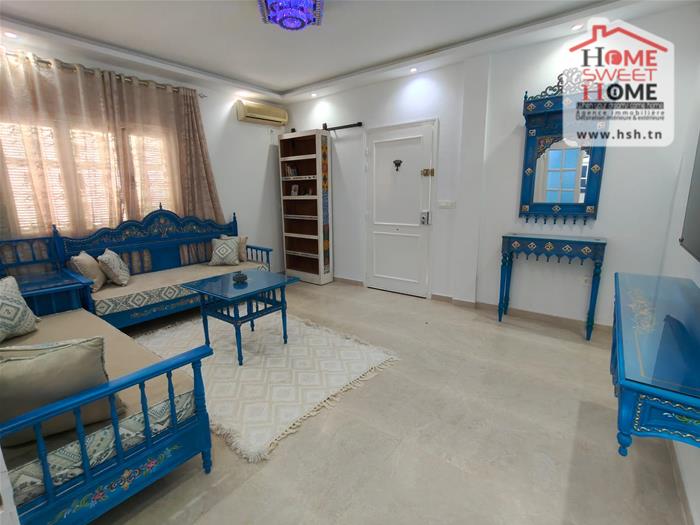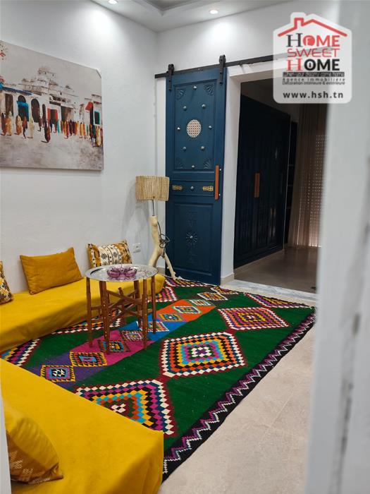 Appart S2 luxueux, indépendant, richement meublé, avec toutes les commodités, dans un style arabesque tunisien, situé à Carthage Salambo. Il comprend un salon, une cuisine, 2 chambres, une salle de bain, une salle d’eau, une terrasse ainsi qu’un petit espace jardin. Contacter l’agent: 56 640 310