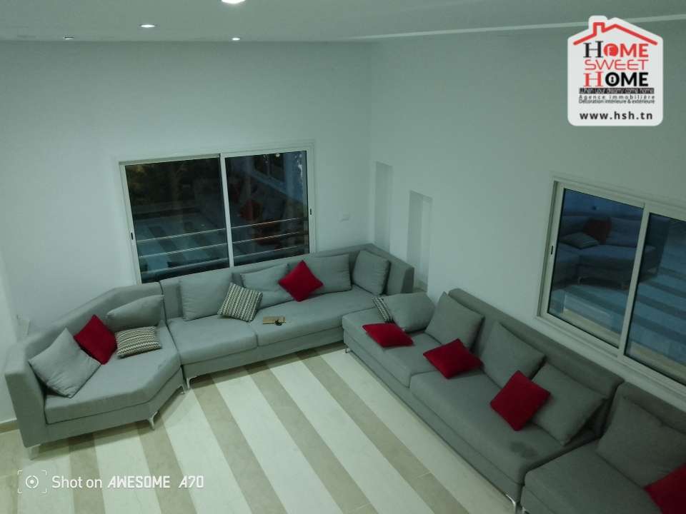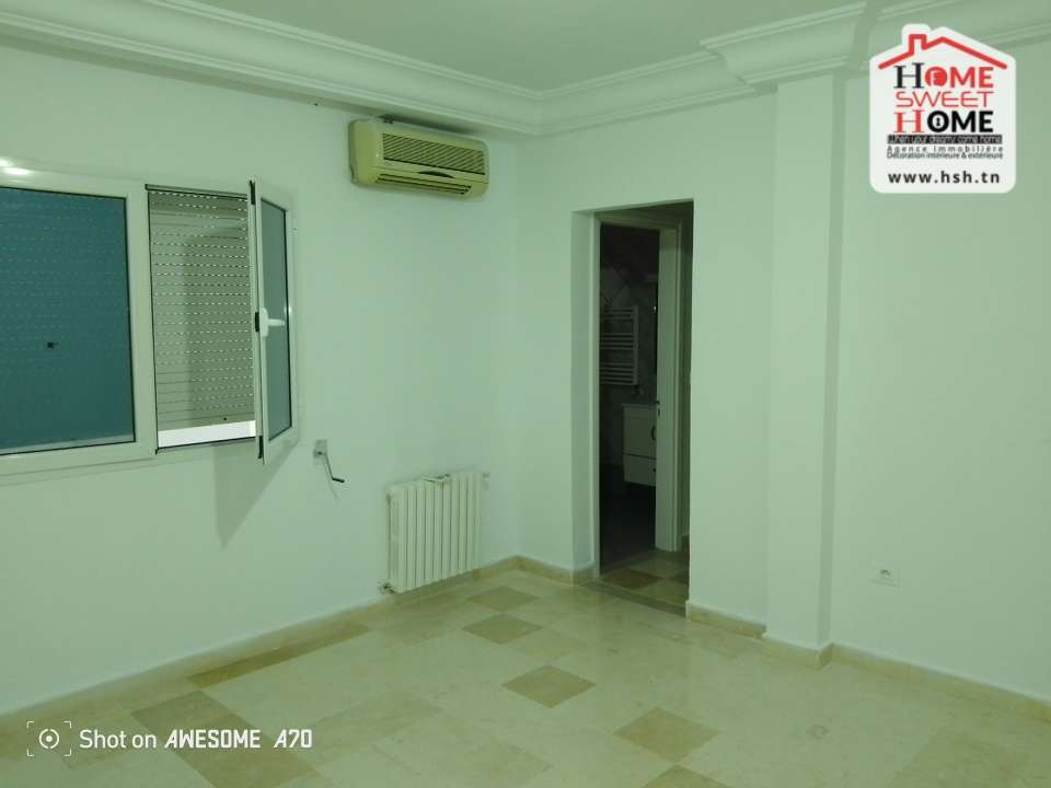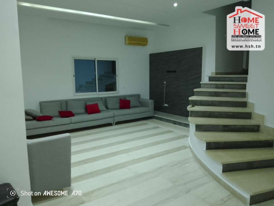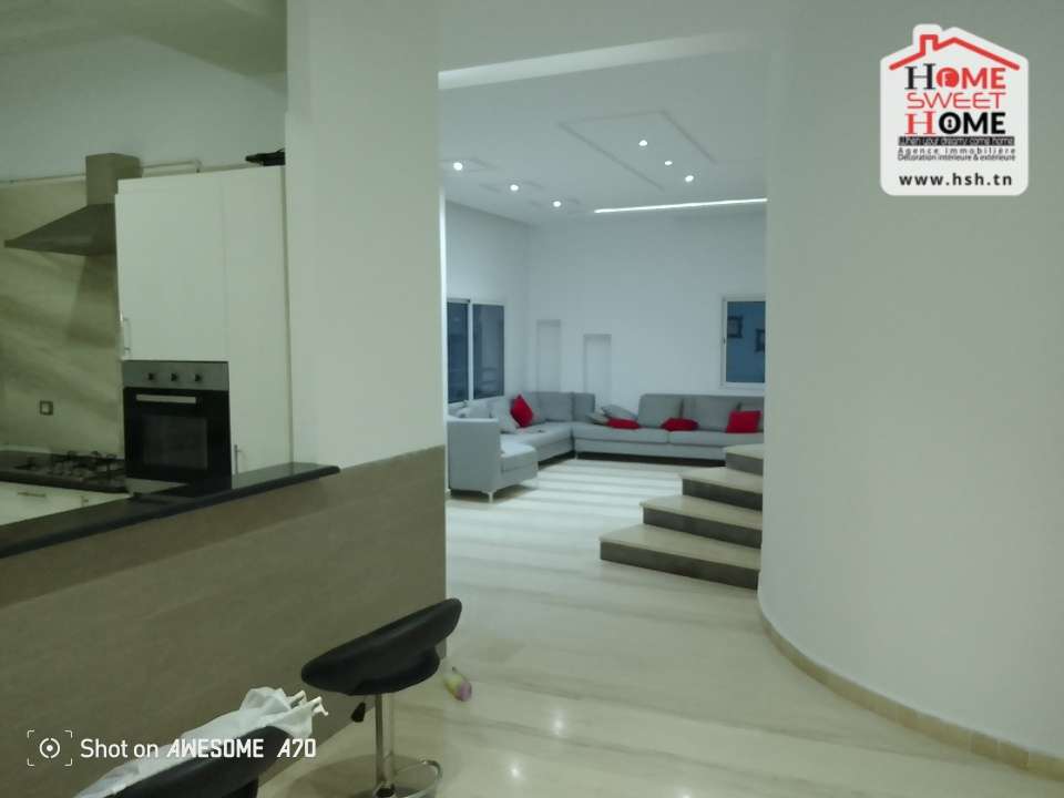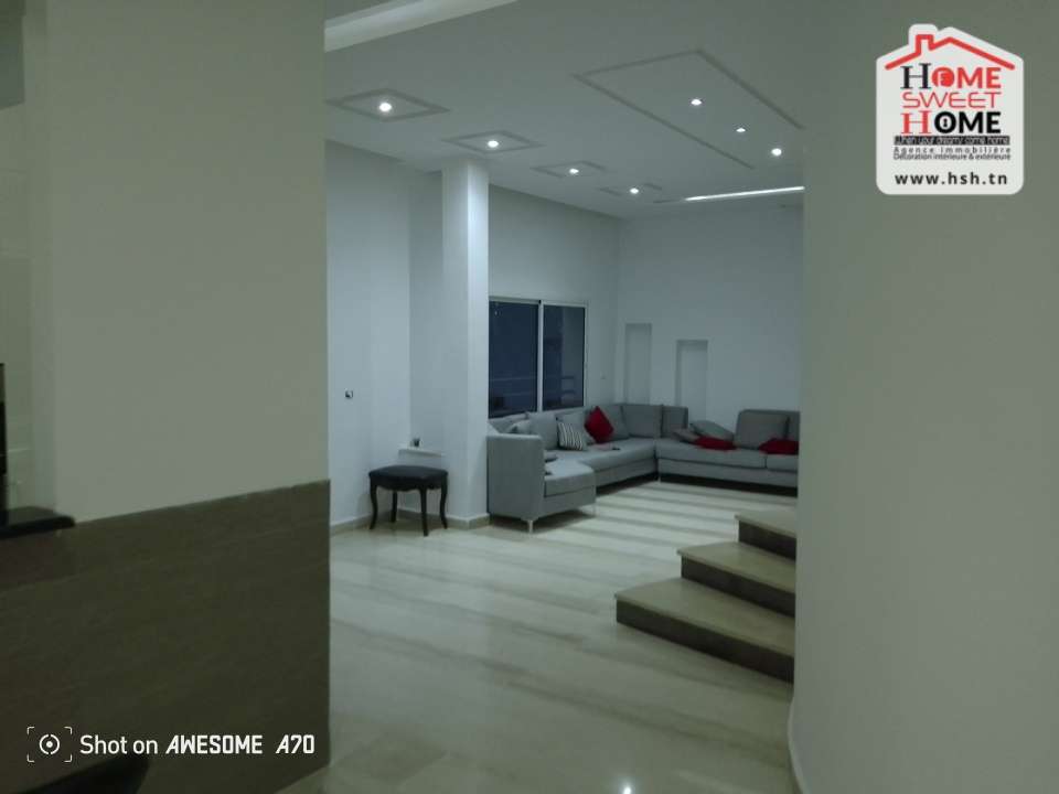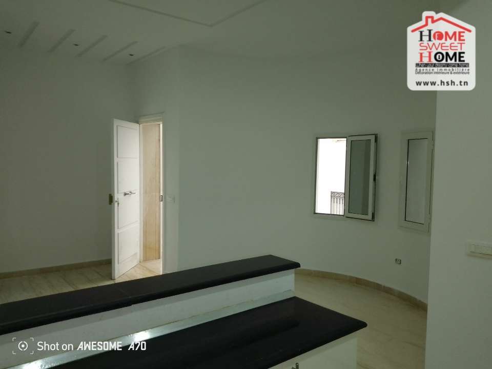 Un étage de Villa de haut standing situé dans un quartier résidentiel à Gammarth Village. A L’entrée, On a un spacieux salon, une cuisine équipée avec séchoir, une suite parentale, 3 chambres, une salle de bain et un abris pour 2 voitures. Pour tous les renseignements, Contacter l’agent sur le 56290850.