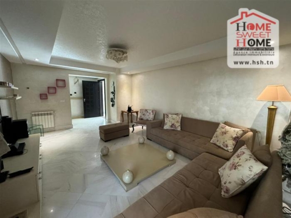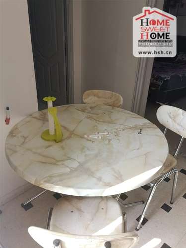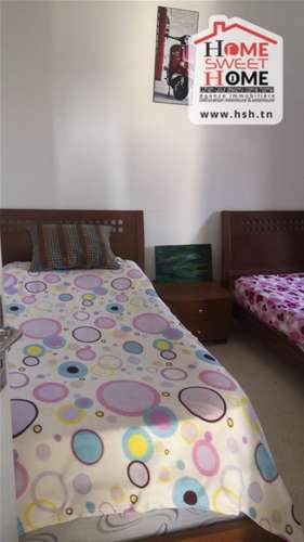 Un 1 er étage de villa meublé situé dans un bon quartier côté Violette, Le Kram. A L’entrée, On trouve un salon, une cuisine équipée, 2 chambres et une salle de bain. Veuillez contacter L’agent sur le 56645340.