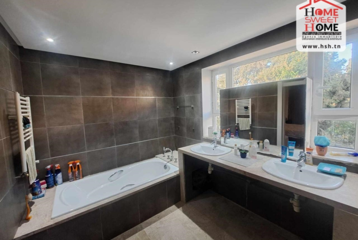 Un 1er étage de villa S5 avec piscine et entrée indépendante situé dans un quartier résidentiel à La Marsa Nassim. À l’entrée, on trouve un salon, une salle à manger, une cuisine équipée, une salle d’eau pour les invités, une suite parentale, 4 chambres et une salle de bain. À l’extérieur, un vaste jardin complète ce bien. Pour tous les renseignements, Contacter l’agent sur le 54670670.