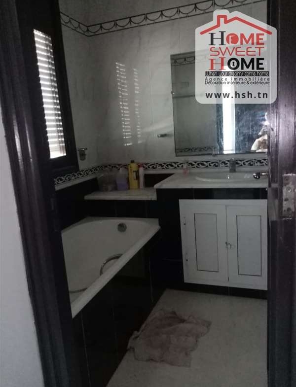 Un charmant étage de villa de haut standing situé dans un quartier résidentiel à El Menzah 9. À l’entrée, On a un grand salon, une salle à manger, une grande cuisine équipée avec séchoir, 2 chambres, une suite parentale et une salle de bain. À l’extérieur, on a une grande terrasse et un joli jardin. Pour tous les renseignements, Contacter l’agent sur le 51665640.