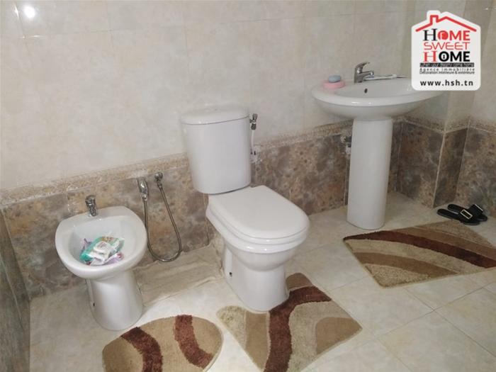 Un RDC de Villa meublé situé dans un quartier résidentiel à Borj Cedria . A L’entrée, On a un spacieux salon, salle a manger, une cuisine équipée avec séchoir, 3 chambres et une salle de bain. A L’extérieur, On a une terrasse . Pour tous les renseignements, Contacter l’agent sur le 58170490.
