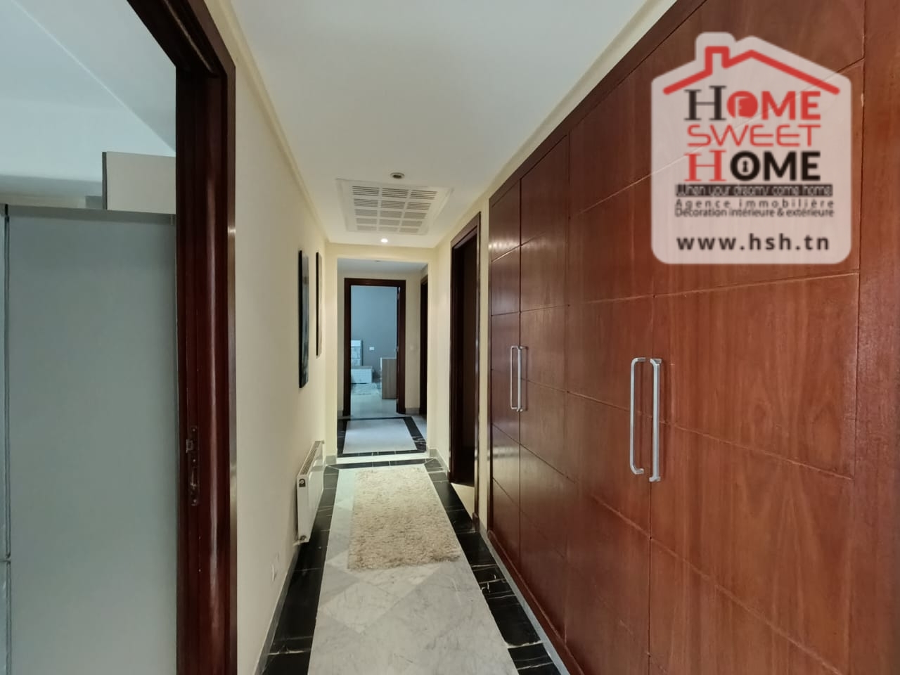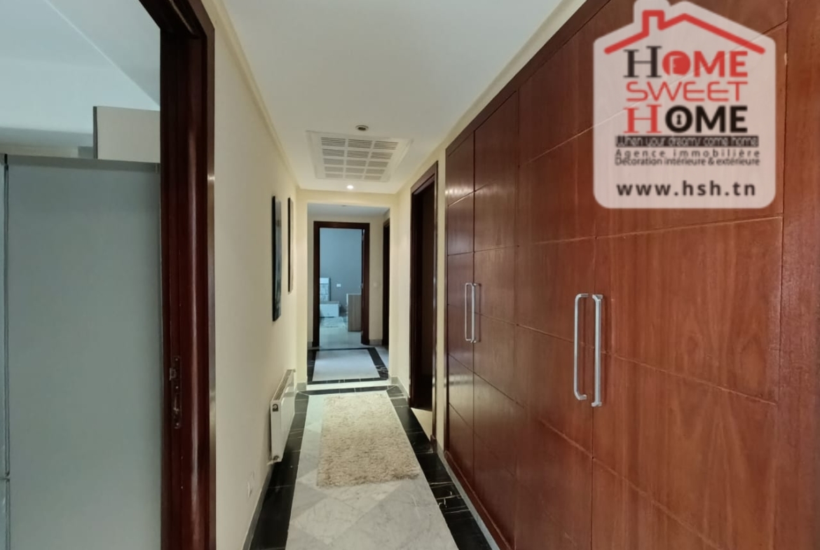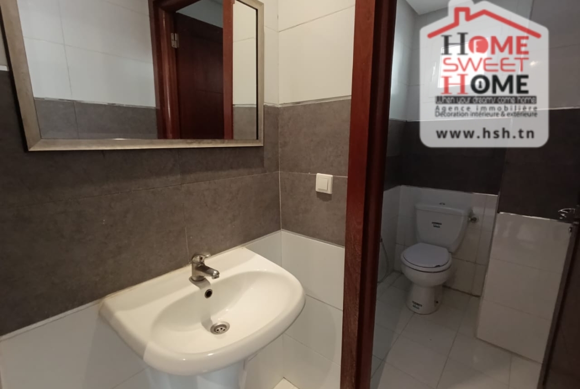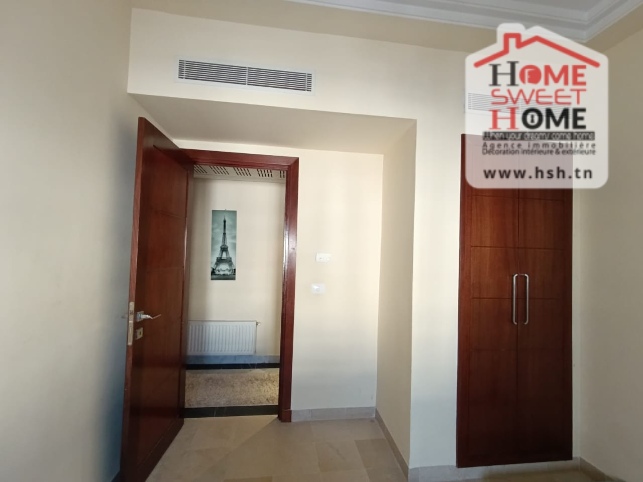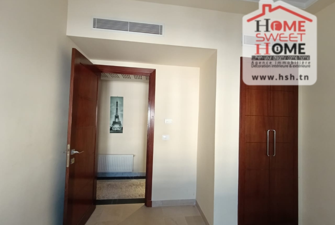 Un appart meublé de haut standing au 3éme étage situé à Ain Zaghouan Nord. A l’entrée, on a un salon avec balcon, une cuisine équipée avec séchoir, une salle d’eau pour les invités, une suite parentale avec dressing, 2 chambres à coucher avec leurs dressings et une salle de bain. A l’extérieur, on a une place de parking sous-sol. Pour tous les renseignements, Contacter L’agent sur le 53650940.