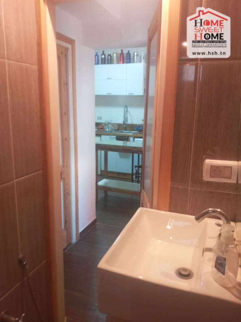 Un studio richement meublé situé dans un quartier résidentiel à Sidi Bou Said. A L’entrée, On a une cuisine équipé ouverte sur un salon, une chambre et une salle de bain. A L’extérieur, On a une terrasse et un coin jardin. Pour tous les renseignements, Contacter l’agent sur le 56790780.