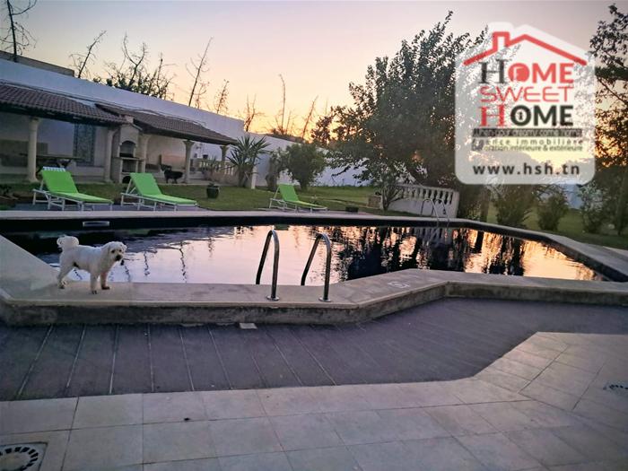 Villa sur un terrain de 5000 m², à Chotrana 1, la Soukra. Au RDC, on a un S4, au 1 ér étage, on a un S3 et à l’extérieur, on a un piscine, jardin, terrasse, coin barbecue et abri de voiture. Contacter l’ Agent: 53650940.