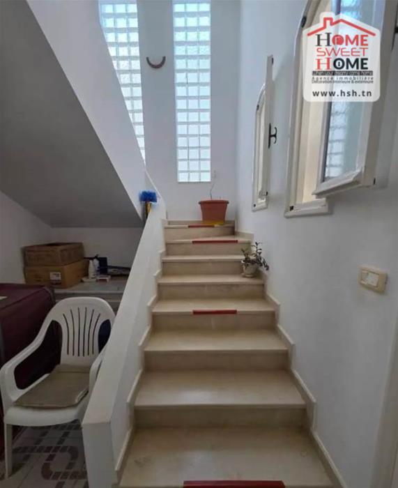Villa sur un terrain d’une superficie de 197m², située à Kélibia. Au RDC on trouve un hall, un grand salon ouvert sur une grande terrasse, un séjour, une cuisine, une salle d’eau, à l’extérieur on trouve un abri de voiture et une douche. Au 1er étage, il y a 3 chambres, dont une avec balcon, ainsi qu’une salle de bain. Contacter l’agent: 56 590 380