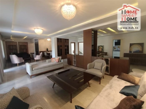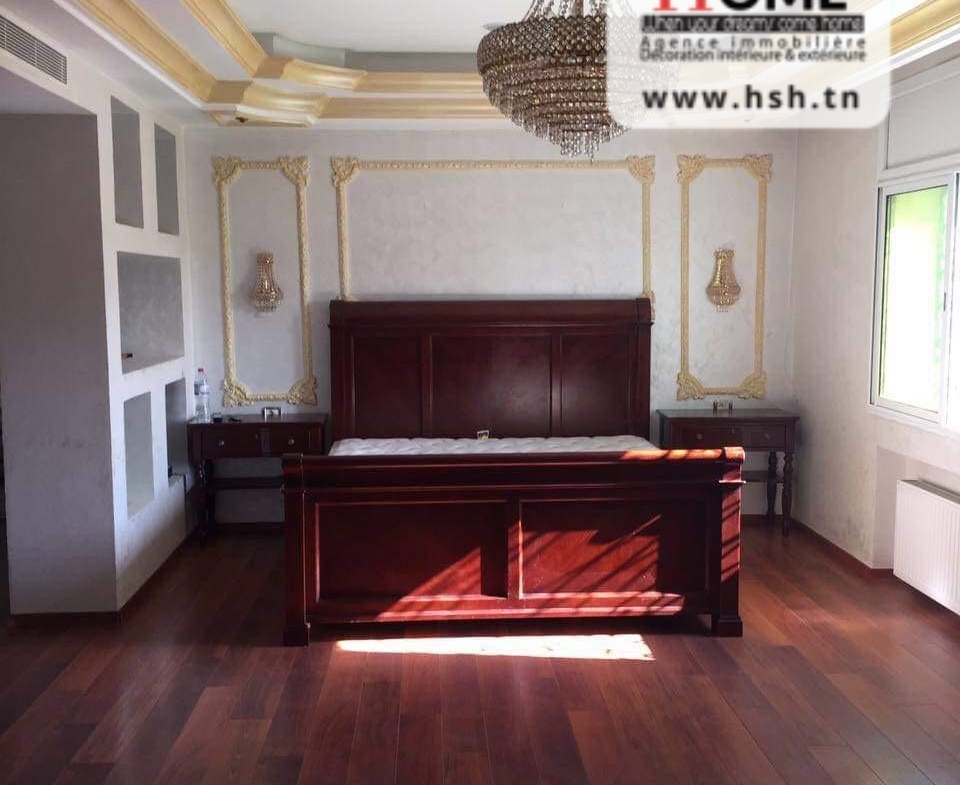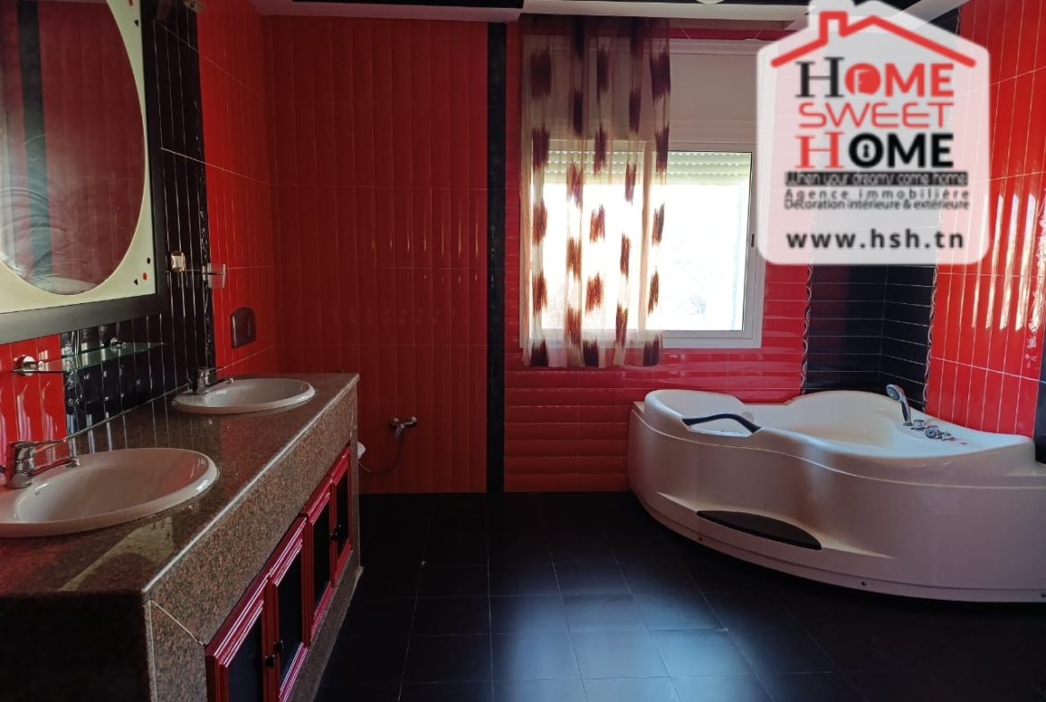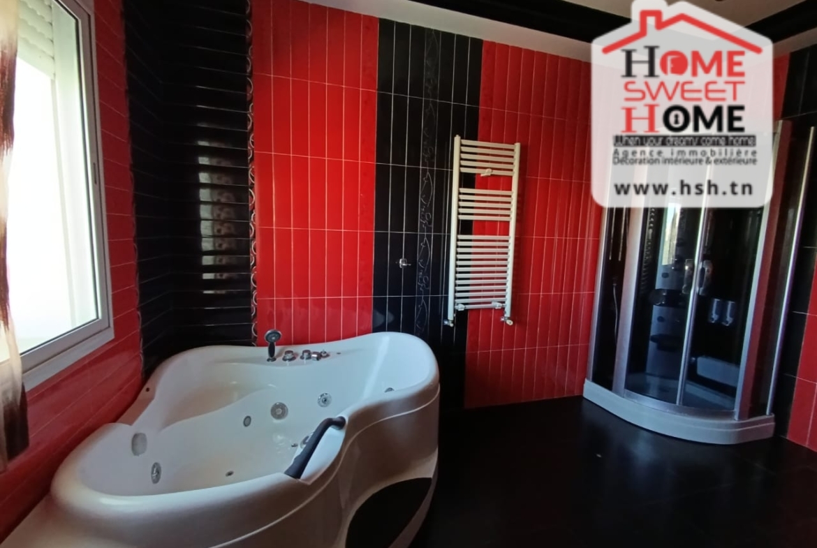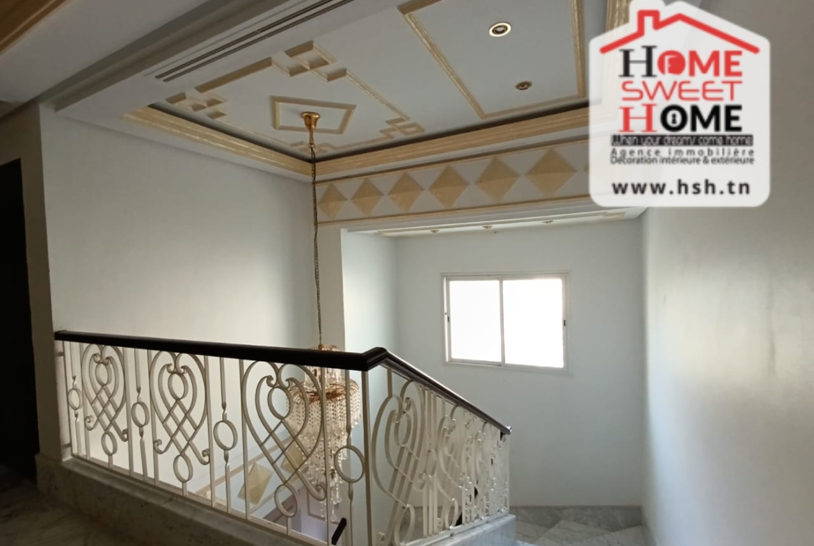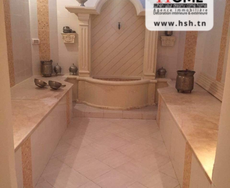 Une Villa nichée avec piscine sur un terrain d’une superficie de 520 m², située dans un quartier résidentiel au cœur de Sidi Daoued, La Marsa. Au Sous-sol, On trouve une chambre de service, une cuisine, un vaste espace de jeu, un hammam traditionnel et une salle de douche. Au RDC, On a un spacieux salon avec 3 espaces de vie, un grand séjour s’ouvre sur une terrasse et une piscine, une cuisine équipée avec séchoir donne sur un jardin, un débarras et une salle d’eau pour les invités. À l’étage, une suite parentale avec jacuzzi, un coin prière, une pièce dressing, ainsi que trois chambres avec dressings et une salle de douche. À l’extérieur, un abri pour 3 voitures est disponible. Pour plus de renseignements, veuillez contacter l’agent au 53650940.