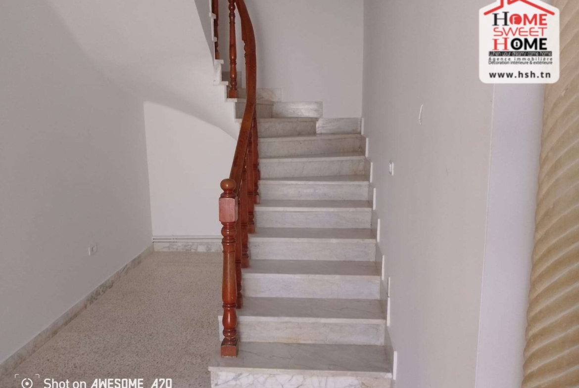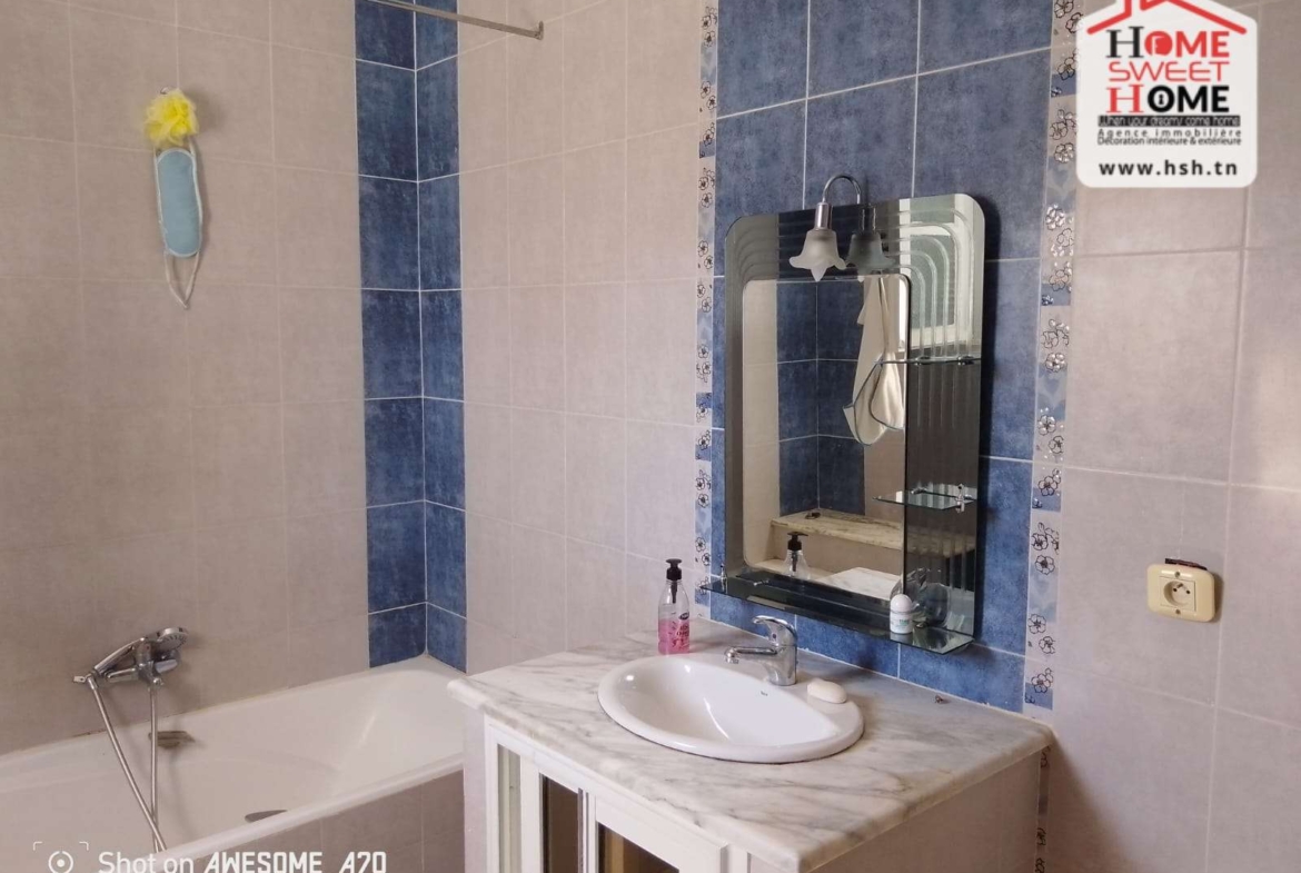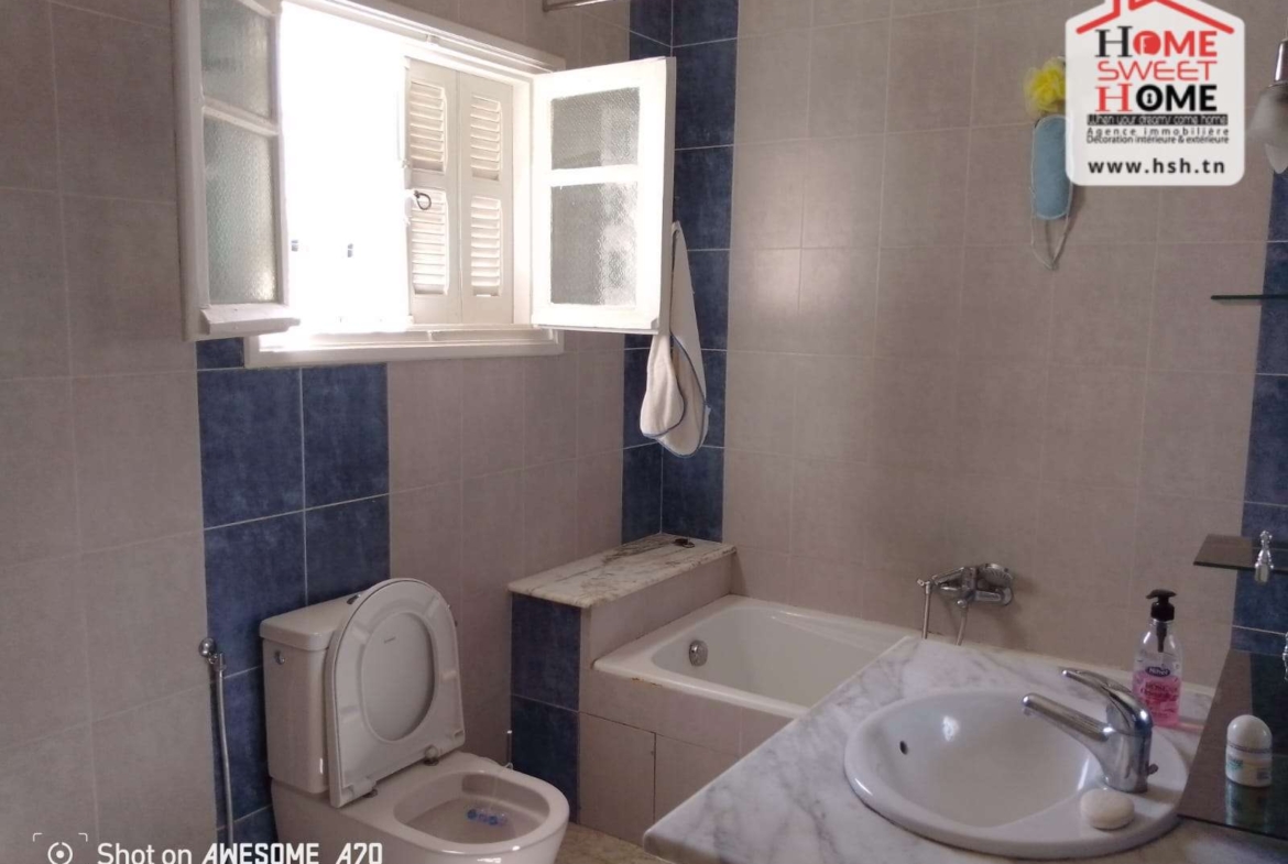 Une Villa plain pied sur un terrain de 300 m² situé dans un bon quartier résidentiel à Gammarth Village. Au RDC, on a un grand salon, une cuisine, une chambre et une salle d’eau pour les invités. A L’étage, on trouve trois chambres et une salle de bain commune. A L’extérieur, on a un jardin, une terrasse, un studio et un garage. Pour tous les renseignements, Contacter l’agent sur le 56290850.