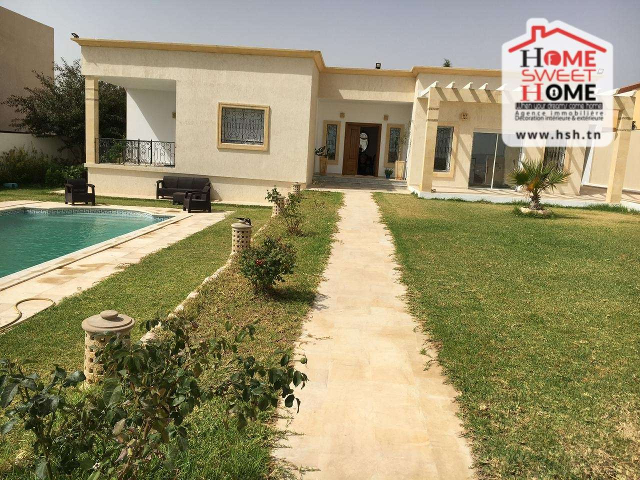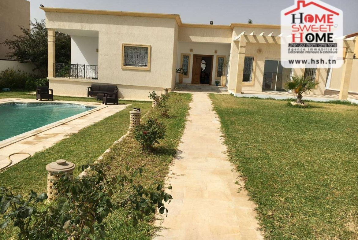 Une coquette villa plein pied de haut standing avec piscine sur un terrain de 1250 m² située dans un bon quartier à La Manouba. À L’entrée, on trouve un grand salon, salle à manger, une cuisine équipée, une kitchenette, une salle d’eau pour les invités, une suite parentale, 2 chambres et une salle de bain. A L’extérieur, On a une grande terrasse, un jardin, majel, 2 puits et un abri pour 3 voitures. Pour tous les renseignements contacter l’agent sur le 56370820.